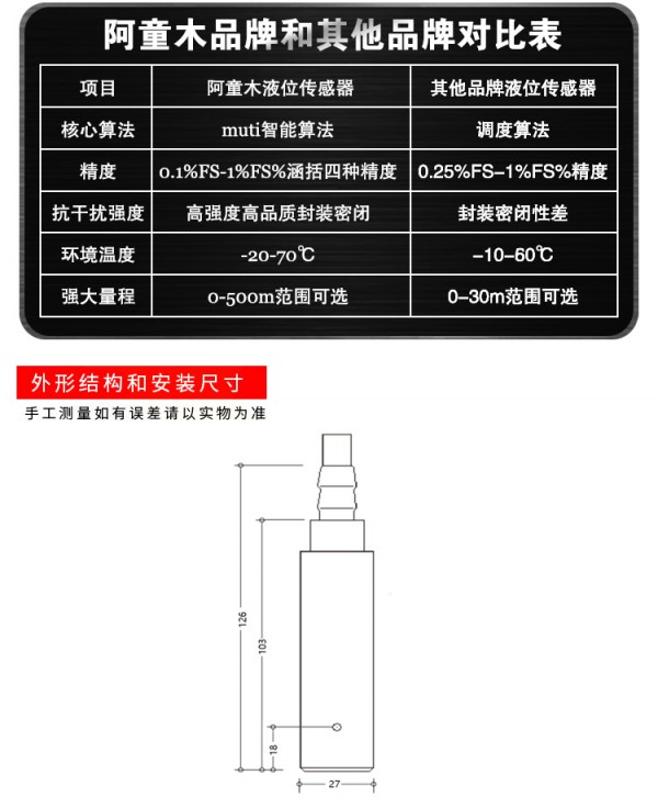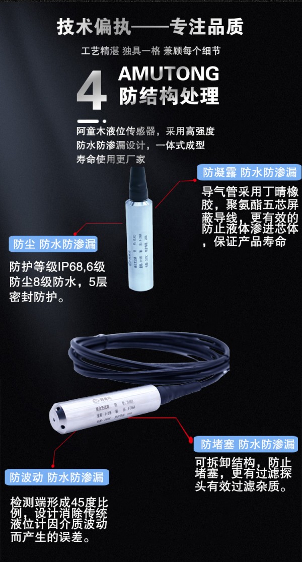 產(chǎn)品性能:投入式液位變送器是基于所測(cè)液體靜壓與該液體高度成正比的原理,采用擴(kuò)散硅或陶瓷敏感元件的壓阻效應(yīng),將靜壓轉(zhuǎn)成電信號(hào)。經(jīng)過(guò)溫度補(bǔ)償和線性校正。轉(zhuǎn)換成4-20mADC標(biāo)準(zhǔn)電流信號(hào)輸出。投入式液位變送器傳感器PL803產(chǎn)品特征:投入式液位變送器傳感器PL803水位液位計(jì)水位傳感器 范圍寬0-500m,精準(zhǔn)度高穩(wěn)定性好導(dǎo)氣傳