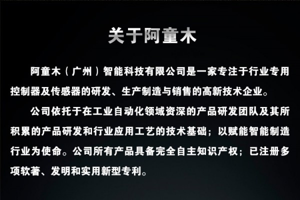 阿童木(廣州)智能科技有限公司是 家專(zhuān)注于行業(yè)專(zhuān)用控制器及傳感器的研發(fā)、 生產(chǎn)制造與銷(xiāo)售的高新技術(shù)企業(yè)。 公司依托于工業(yè)自動(dòng)化領(lǐng)域十年以上資深的產(chǎn)品研發(fā)團(tuán)隊(duì)及其所積累的產(chǎn)品研發(fā)和行業(yè)應(yīng)用工藝的技術(shù)基礎(chǔ);以賦能智能制造行業(yè)為使命。 公司所有產(chǎn)品具備完全自主知識(shí)產(chǎn)權(quán).