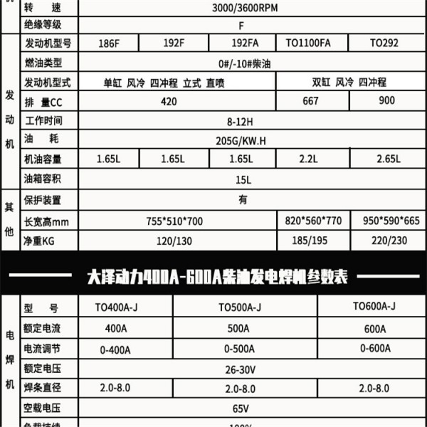 大澤動力發電電焊機是在大澤動力電焊機基礎上設計開發的,很好的繼承了電焊機的高可靠性,主回路晶閘管模塊、熱保護裝置、控制電路IC等關鍵器件都為德國大澤動力進口配置。H級絕緣;主變壓器、電抗器線圈采用大澤動力生產的高性能絕緣紙,絕緣強度高,耐溫高,防塵性好;電源、發電電焊機符合IP23標準。適應苛刻的使用環境,便于野外作業。