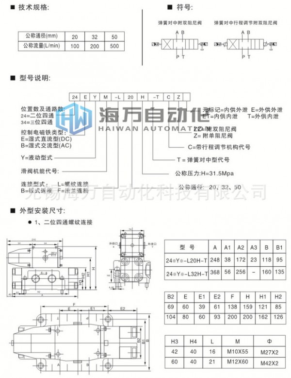 24BYM-B20H-T,24BYO-B20H-T,24BYY-B20H-T電液換向閥 ,無錫海萬電液換向閥生產廠家,電液換向閥價格,聯合設計型電液換向閥。