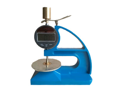 2、用手指按下操縱桿,使測足上臺,將被測片材質放在平臺與測足之間,輕放操縱桿此時表的讀數,即被測物的厚度。每個待測尺寸至少要取5個測量值,計算5點的平均值作為該卷材的厚度并報告最小單位值。