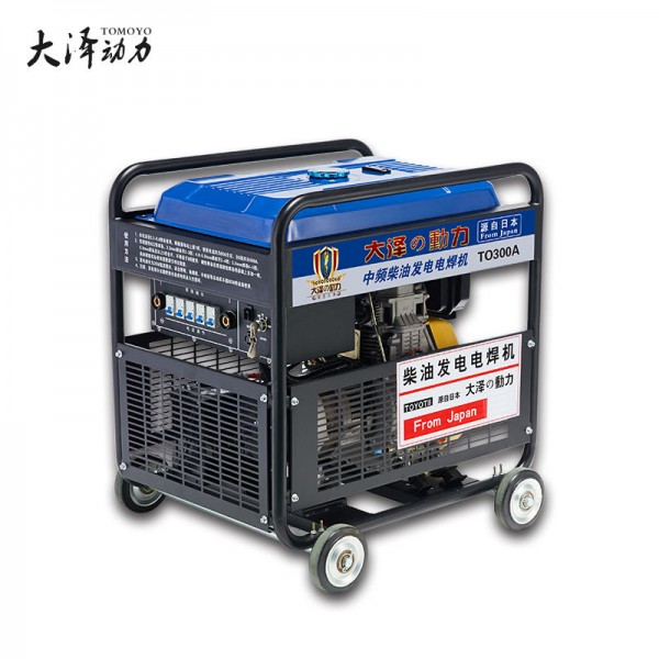 戶外手推式300a柴油發電焊機 發電電焊機專用 電焊機采用發電與焊接共用一個發電繞組,通過高頻逆變技術,將發電輸出轉換為焊接所需電壓與電流,顯著減小了焊機的體積、重量和損耗,提高了焊機的整機效率,同時,由于工作在高頻狀態,焊接穿透力強,熔池深,具有引弧容易、飛濺小,電流穩定、成型好等特點,有利于提高焊接產品的質量。大澤動力汽油和柴油發電機焊機在焊接質量普通焊接沒區別而且大澤動力汽油發電焊機和柴油發電焊機是普通焊機比不了的,大澤汽油發電焊機和柴油發電焊機都是不需要接電線的,方便一些在野外需要電焊而且接電線的情況下,大澤動力汽油發電焊機和柴油發電焊機讓您在戶外工作更方便。柴油發電電焊機優點:省油方面比較可觀,動力馬力大,可以長時間連續工作。一般適合移動方便且需要長時間使用發電焊機的用戶使用。