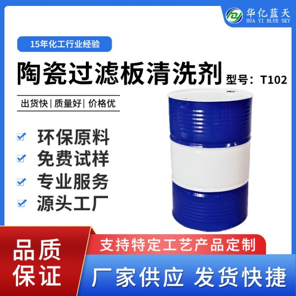 cription.2.221425b2ky6VNr">陶瓷過濾板清洗劑T102是一種新型環保清洗劑,主要由金屬離子絡合劑、有機滲透劑、水溶性有機酸、可溶性鹽等組份復配而成,完全替代硝酸、鹽酸類強酸,產品具有較強的滲透性, 快速的潔凈能力,能快速清洗掉陶瓷濾板表面和微孔內的金屬礦粉、細微顆粒物和泥沙、碳酸鈣等化學結垢物,有效清除難溶附著物和有機藥劑,清洗后濾餅水份含量低于9%,對陶瓷濾板、不銹鋼無腐蝕,提高過濾效率,延長濾板使用壽命,降低生產成本,易降解,對人體和環境友好。