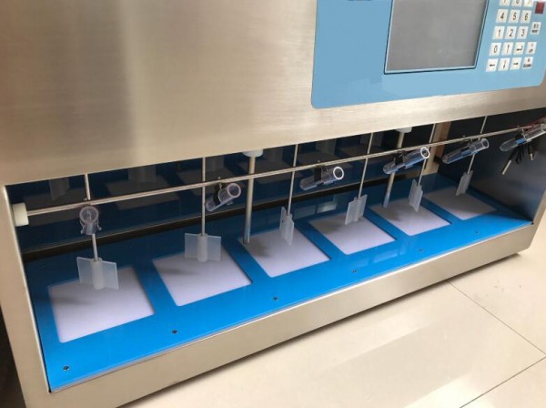 5、自動加藥系統(tǒng)可在每段程序開始前,同步往燒杯內(nèi)加藥,可多次多品種自動加藥