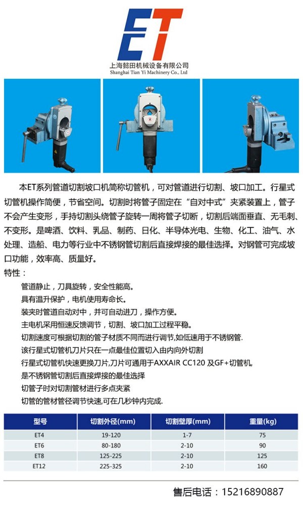 免責聲明:以上所展示的[ET GF鋸行星式切管機 gf衛生管道 食品管道 ]信息由會員[上海懿田機械設備有限公司]自行提供,內容的真實性、準確性和合法性由發布會員負責。