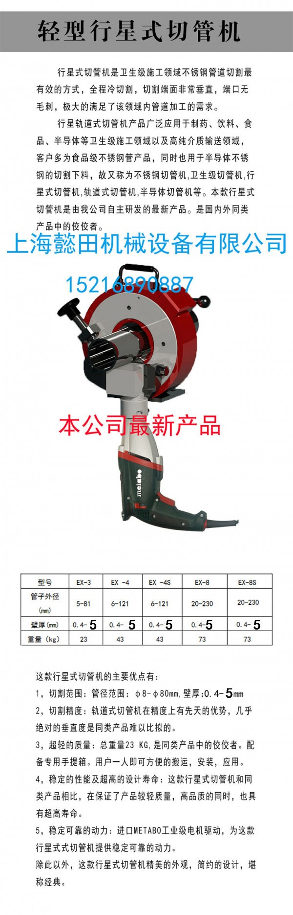 免責(zé)聲明:以上所展示的[ET GF鋸行星式切管機(jī) gf水處理管生物衛(wèi)生管切割機(jī)]信息由會(huì)員[上海懿田機(jī)械設(shè)備有限公司]自行提供,內(nèi)容的真實(shí)性、準(zhǔn)確性和合法性由發(fā)布會(huì)員負(fù)責(zé)。| 詢價(jià)標(biāo)題 | |