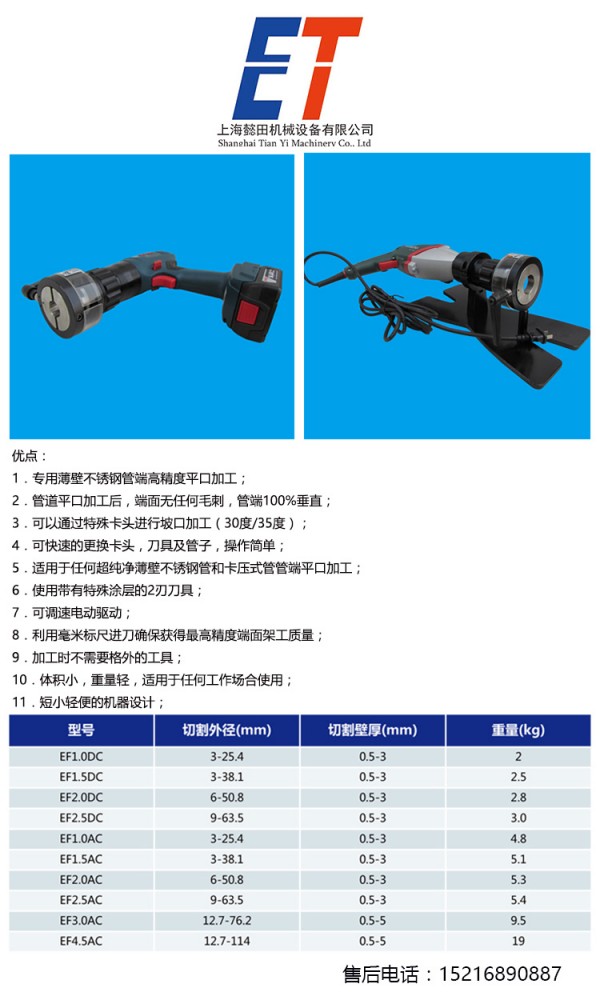 5.適用于任何超純凈薄壁不銹鋼管和卡壓式管管端平口加工;