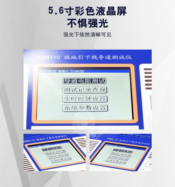 佐航DDW8110接地引下線導通測試儀交流款儀器精度高、輸出電流最大10A、電壓25V、超寬量程、輸出電流可調、斷線保護、斷電保護、過熱報警、可打印、本機存儲、5.6彩屏、簡形電力