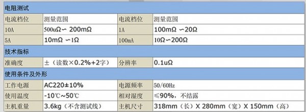 2. 量程寬、精度高,500uΩ~200Ω。
