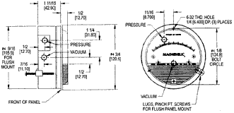 尺寸圖,標(biāo)準(zhǔn)2000系列Magnehelica壓力計(jì) (中壓和高壓型略有不同)