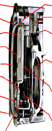 | "Wishbone" 裝置:為軸、螺旋彈簧軸承和指針架提供安裝。 |