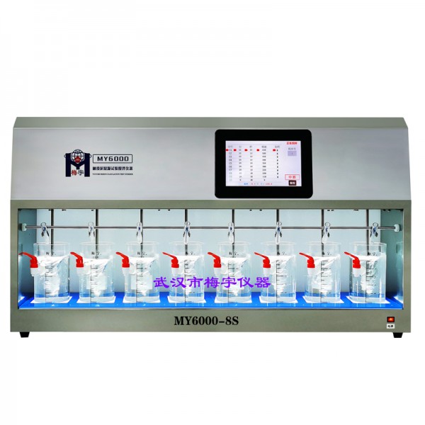 MY6000-8S觸摸屏八聯混凝試驗攪拌機-實驗用八聯電動攪拌機是實驗室常用的大型攪拌裝置之一,其長為117厘米寬25厘米高55厘米,儀器凈重45Kg,單次處理容量達8L~16L,一體化設計優勢,讓移動、維護更方便。內存30組程序,八根攪拌軸實現異步運行或同步運行,攪拌軸垂直升降,中文/英文雙界面自由切換,適用國內外各類用戶。
