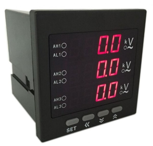 三相數顯電壓表主要用于對三相電氣線路中的三相電壓參數同時進行測量,用三排LED數碼管分別顯示出其測量值。