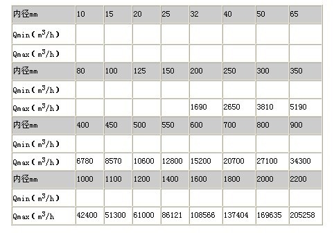 zui大流量和zui小流量必須符合下表中的數