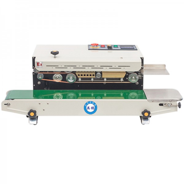 佛山英鵬防爆臥式薄膜封口機采用電子恒溫控制和無級調速傳動系統,具有自動連續封口、印刷產品標簽、一次完成的功能。
