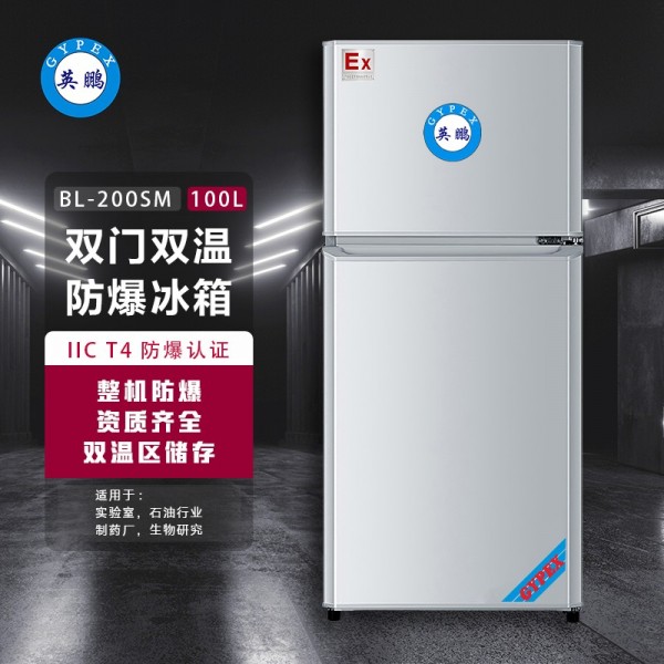 英鵬防爆雙門雙溫冰箱BL-200SM100L適用于石油、化學化工、醫藥、航天、試劑、制藥廠、實驗室、儲藏、科研院所等系統和生物材料、jun shi等部門具有ⅡC級,溫度組別為T4的氣體混合物的l區(或2區)內部危險性場所,BL系列工業級集成防爆冰箱,是采用集成防爆技術,按工業環境使用要求制造的ⅡC級防爆制冷系統。