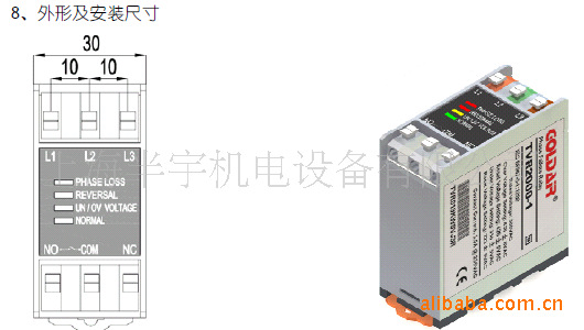 TVR2000系列三相電源監(jiān)視器主要用于三相交流50/60Hz,額定電壓80~690V的電路中,作為對三相電