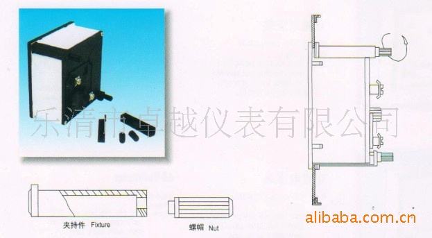 本產品整體輕巧簡單,實用性能好,外觀呈乳白色、光滑無暇癡、阻燃、防裂、防脆。刻度表盤線條、字體清淅。夾持式安裝,配有兩個夾持件及附件螺絲,安裝方便,正面尺寸72*72,開孔尺寸67*67