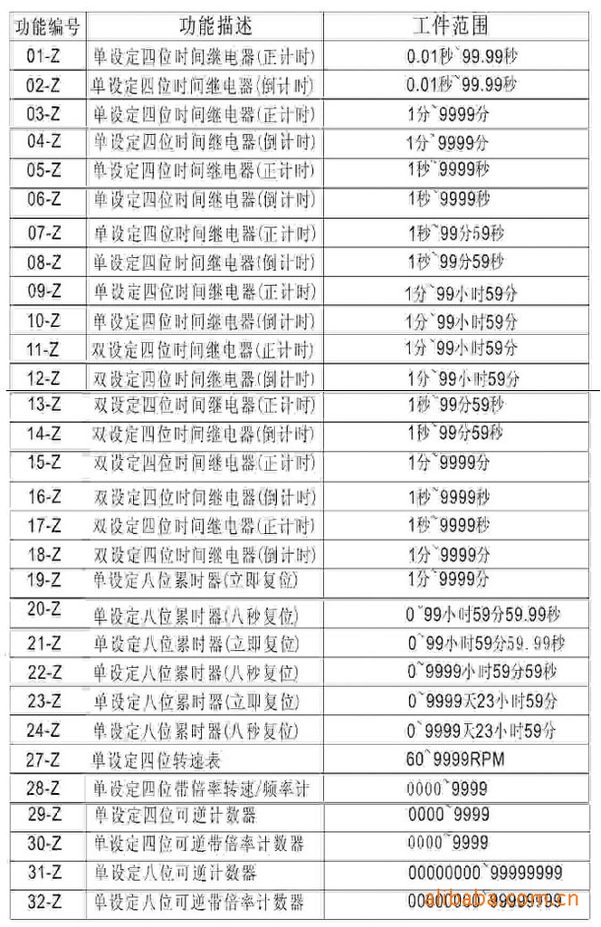 l內含定時器、累時器、計數器、轉速表、頻率計等32種功能.