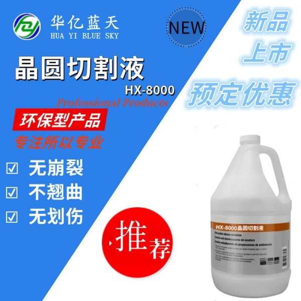 晶圓切割液HX-8000主要用于各類晶圓圓片、硅片、單晶硅、多晶硅、晶體、LED、陶瓷基板等硬脆材料切割工藝。