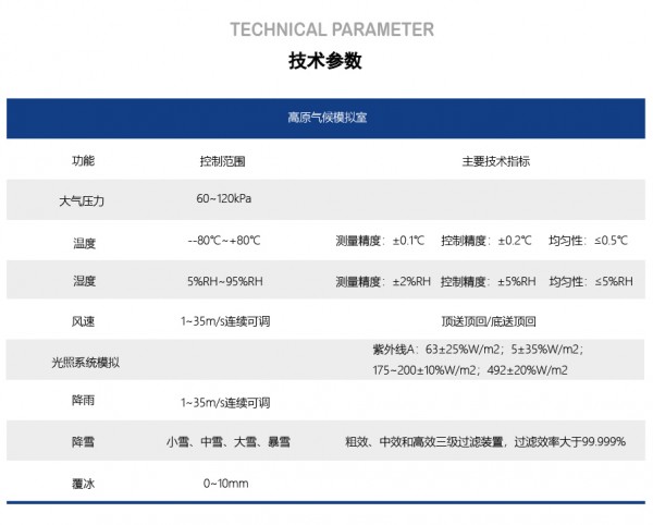 至此:云沛集團高原低壓綜合環境艙實現大氣壓力模擬、低溫、高溫、低濕、高濕、低氧、富氧icon、CO2、氮氣、光照、輻射、空氣顆粒物、雨、雪、霧等全模擬。