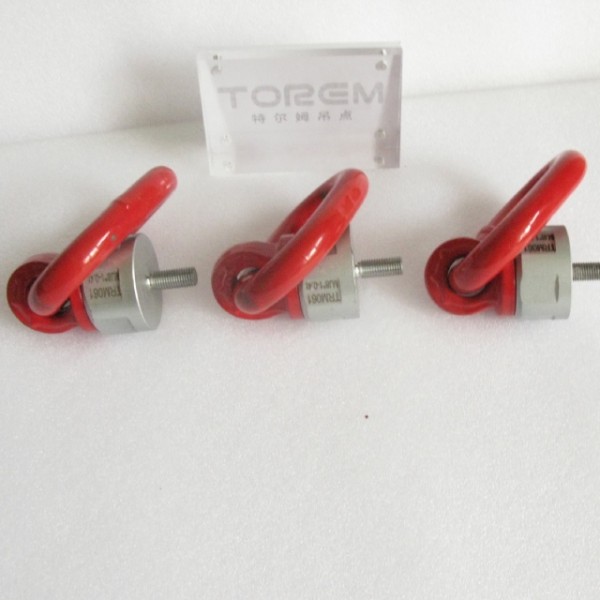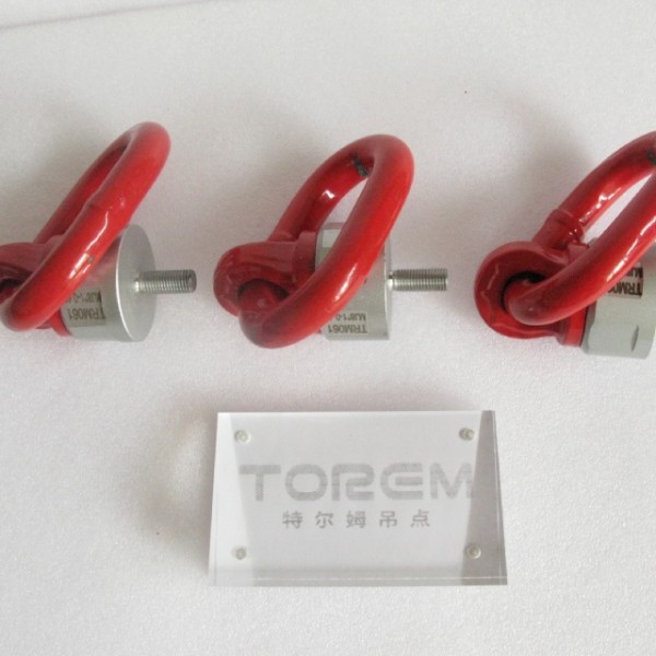 TRM061旋轉吊環是合金鋼材質經高溫熱處理出來的用于機械吊裝產品,旋轉吊環可以360度旋轉,180度范圍內任意翻轉,安全系數4:1。廣泛應用于海上,電力,造船,物流搬運、機械吊裝等領域,以提高搬運吊裝的工作效率。節省了人力物力。