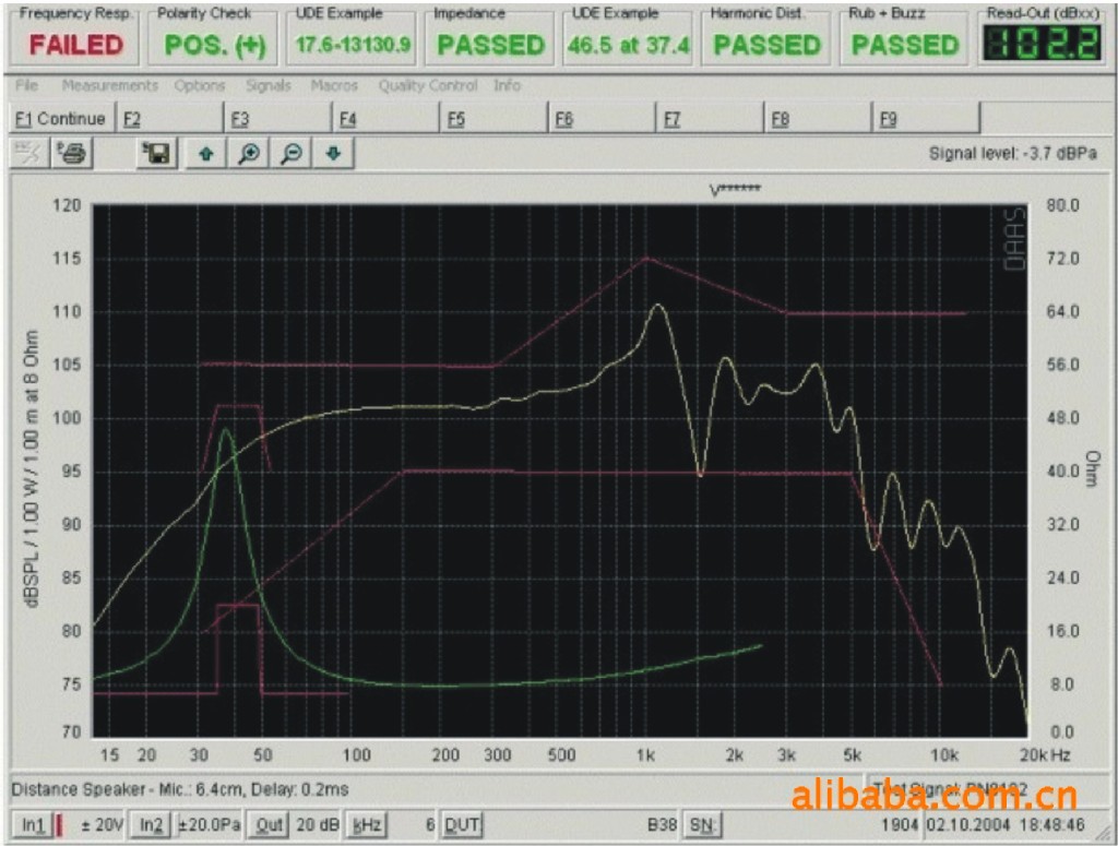 產品簡介:生產品質管制設定有三種多,可滿足生產快速、研發的要求。能與Microsoft產品完全兼容,可隨意編輯、制作各種特性曲線的圖形文件、品質管制文件、Web發布。產品測試各項技術指標與目前貴的B&K儀器一致,能清晰反應產品各聲學物理特性。目前是性能、價格,是歐美企業認可的儀器。