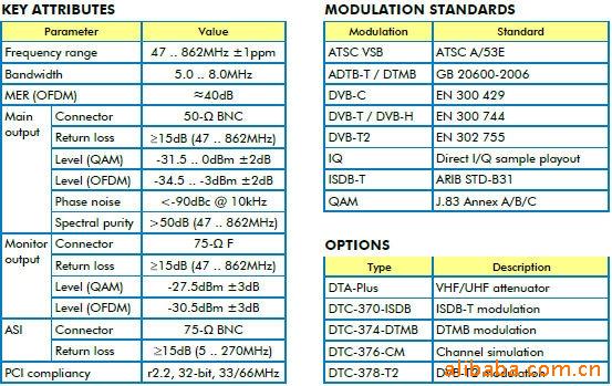 FEATURES Multi-standard modulator with support for most QAM-, OFDM- and VSB-based modulation standards Supports all constellations and modulation modes for each supported standard All-channel upconverter 47 .. 862MHz covering full VHF and UHF band Direct 12-bit I/Q sample playout Output amplifier with programmable 0 .. 31.5dB attenuator in 0.5dB steps Use DTA-Plus to extend the output-level