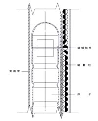 液位計根據浮力原理和磁性耦合作用研制而成。當被測容器中的液位升降時,液位計主導管中的浮子也隨之升降,浮子內的磁鋼通過磁耦合傳遞到現場指示器,驅動紅、白翻柱翻轉180。,當液位上升時,翻柱由白色轉為紅色,當液位下降時,翻柱由紅色轉為白色,指示器的紅、白界位處為容器內介質液位的實際高度,從而實現液位的指示。 |
